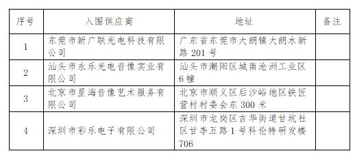 三、入圍供應(yīng)商及主要標的信息