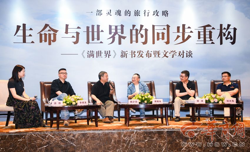 新書發布會現場,著名文學家韓少功,著名作家、編劇、影視監制李修文,中國社科院研究員、《民族文學研究》雜志副主編劉大先,《美文》雜志常務副主編、陜西省文藝評論家協會副主席穆濤和《滿世界》作者龔曙光,與來自全國各地媒體記者和讀者一起,展開了一場帶著靈魂旅行的討論。