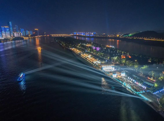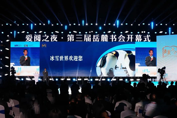 “愛閱之夜”第三屆岳麓書會開幕式舞臺選址在橘子洲頭。橘子洲是湖南“悠久的歷史文化、厚重的革命文化、活躍的現代文化”的融合之地。此次岳麓書會花落“中國第一洲”橘子洲,在青山綠水之間打造“文化+科技”深度融合的“愛閱之夜”,讓岳麓書會與橘子洲頭珠聯璧合,共啟文旅融合的新篇章。“愛閱之夜”開幕式當晚,外場是宛若“清明上河圖”的“書山有麓”閱讀市集,內場是極具裸眼3D震撼效果的旋轉立體舞臺。開幕式結合AI、VR、水幕全息投影等科技,精彩上演“藏書岳麓”“愛閱分享”“榜單發布”“云端書香”“閱見未來”“創意燈光秀”等內容環節。嘉賓和讀者們幕天席地,置身繁星點點、花香宜人、場景變幻的星空下,沉浸式感受閱讀帶來的美好與愜意。